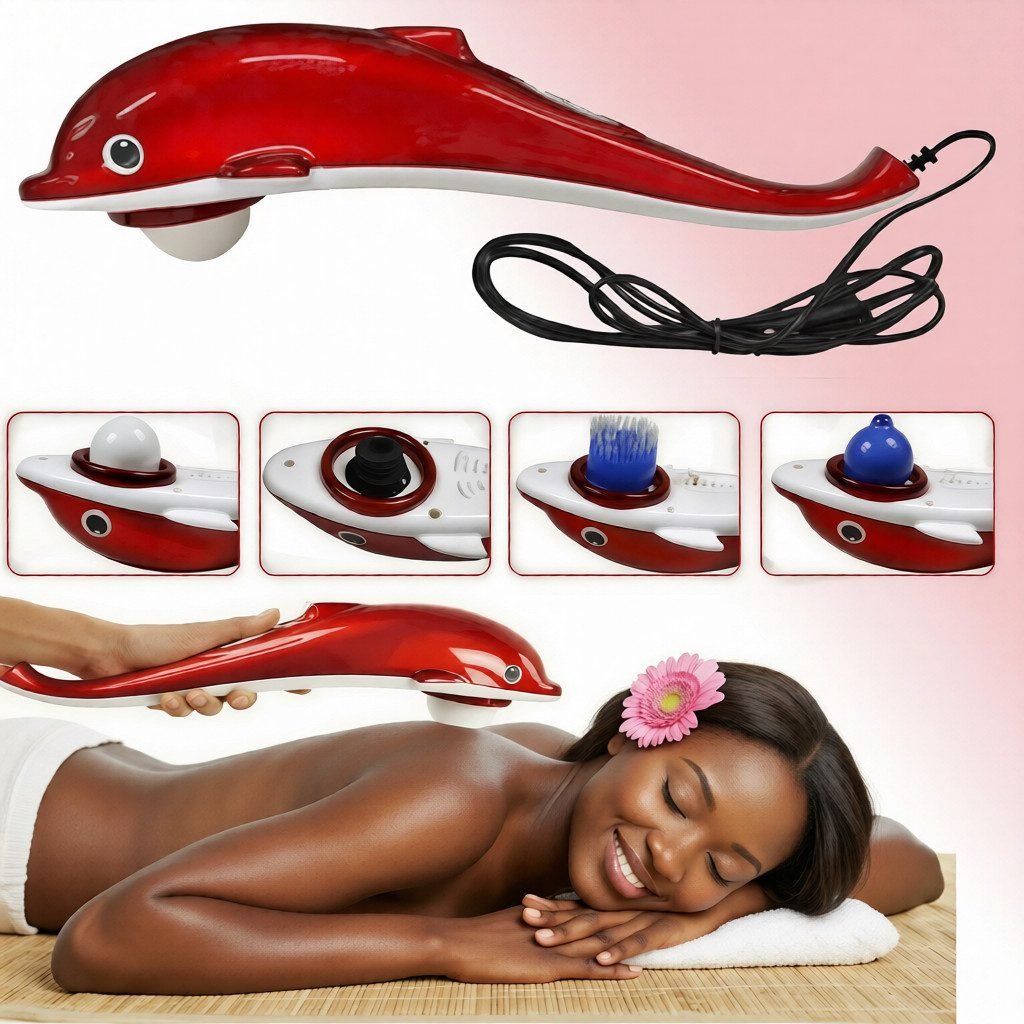 Relax and relieve body pain with this brand new Dolphin Infrared Massager. Designed for deep tissue percussion therapy, it helps reduce muscle tension, improve blood circulation, and provide soothing relief across the entire body.