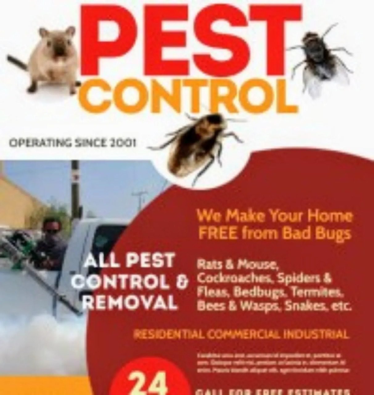 Pricing: Depends on area size, distance & chemicals used