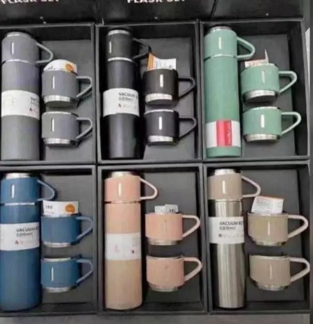 Keep your drinks hot or cold for hours with this brand new flask set with cups, designed for convenience and everyday use.